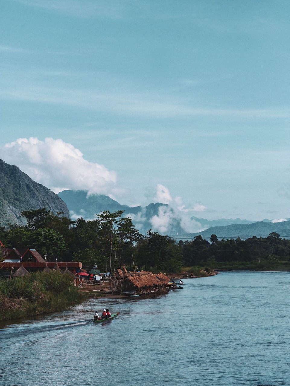 2. 방비엥: 석회암 산맥과 에메랄드빛 강을 따라 액티비티를 즐길 수 있는 모험의 도시입니다.